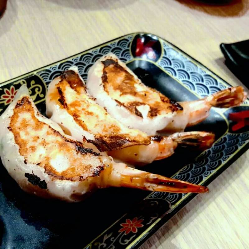 包着一整只大虾的煎饺子