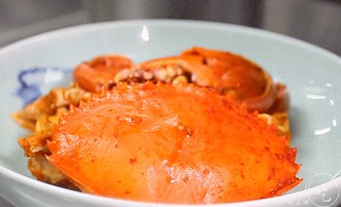 1/4的蟹身就壮得像鸡腿,活蟹现杀现做,蟹肉和壳会有所粘连,一掰就开的说明是肉质少的水蟹。