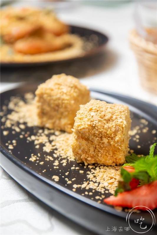 沙拉中的虾肉也很紧实,配上芥末奶油口感很清爽;榴梿麦香糕和麦片虾用的是同款,香而不腻。