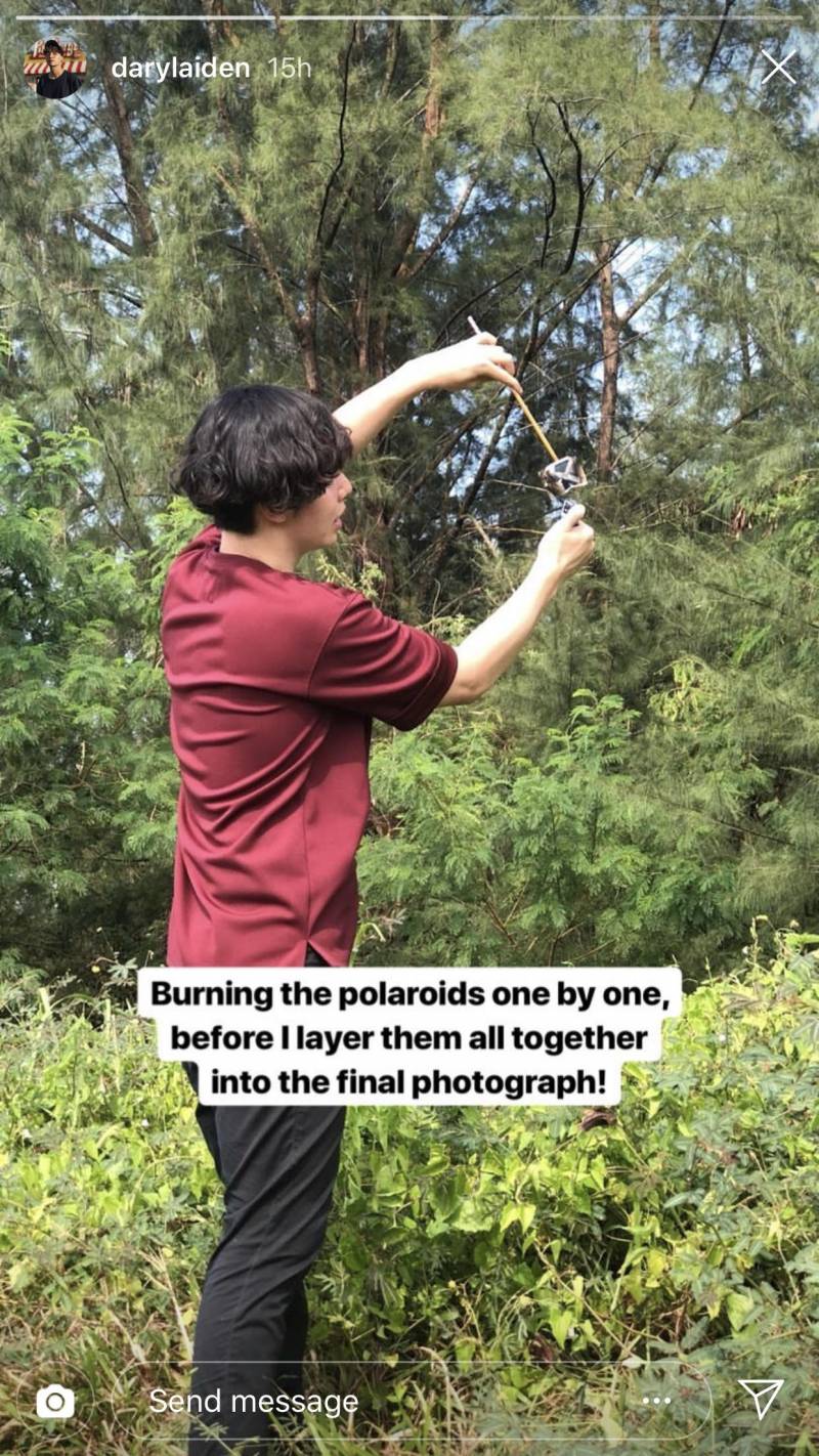Daryl Aiden Yow先把Polaroid照片一一点燃,再把个别照片通过修图软件合成起来。