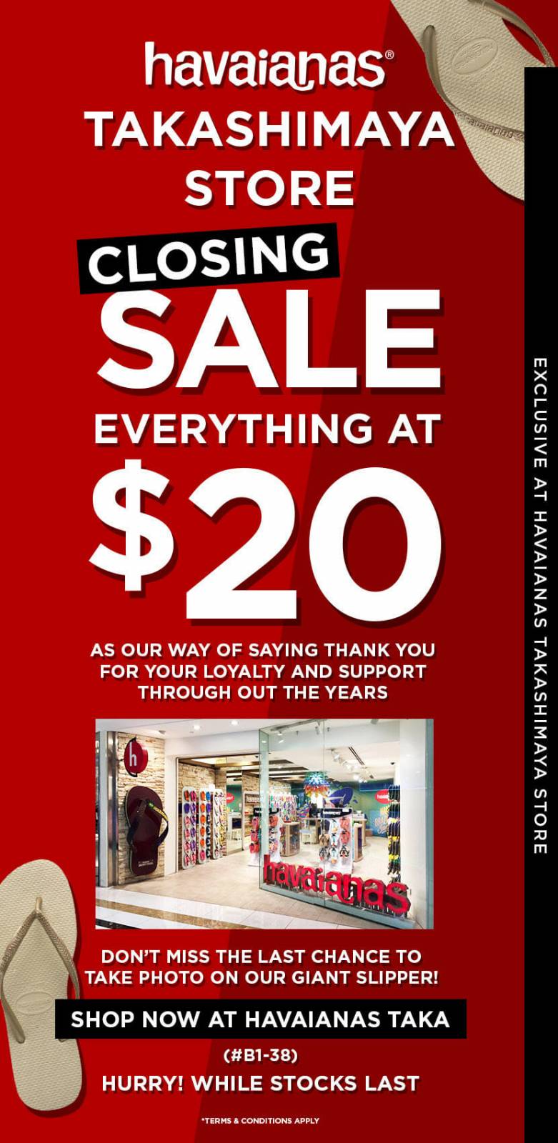 哈瓦仕Takashimaya店关门大吉,全场人字拖只要20块!