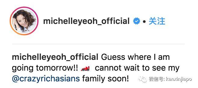 杨紫琼也po视频说要今天来新加坡看F1比赛,还在ins上发文说要迫不及待地见“疯狂的亚洲富豪”家族(影片中家族在新加坡)了。你也有可能街头邂逅她哟。