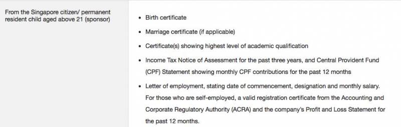 3、21周岁以上新加坡公民/PR的父母