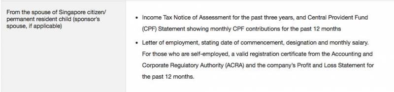 11、公民/PR担保人及其配偶的就业证书,说明就业起止日期。对于自我雇佣者,须提供会计和企业监管局ACRA授予的注册证书,公司简介及过去12个月的资产负债表。
