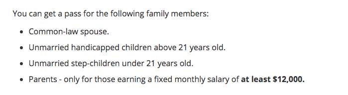 4、EP/SP准证持有者的父母(月薪12000新以上)