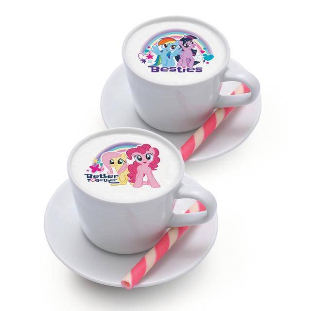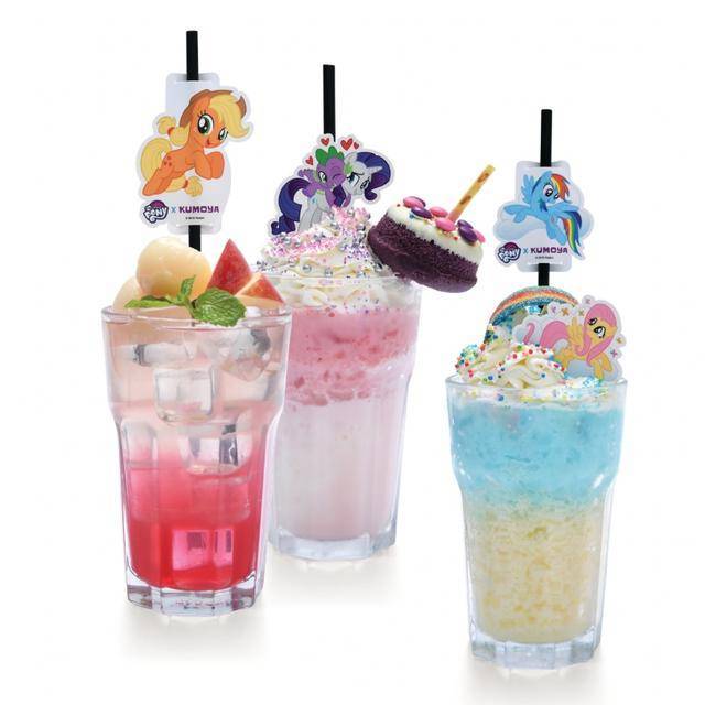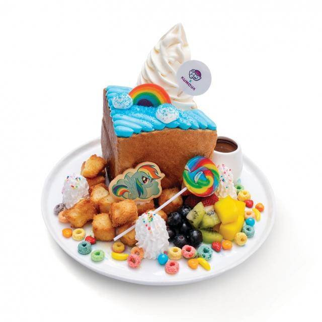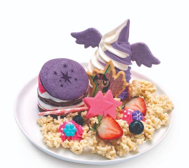 菜单除了有像薯条和日式炸鸡的小吃外,还包括日式咖喱饭、乌冬面、炸鸡汉堡等主食。此外,咖啡馆还将销售各式各样以彩虹小马为主题的饮料和甜品,其中当然少不了松软的白云棉花糖。