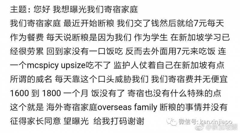 最近有网友求助,来新加坡读书选择寄宿家庭,结果却受到这样的待遇……
