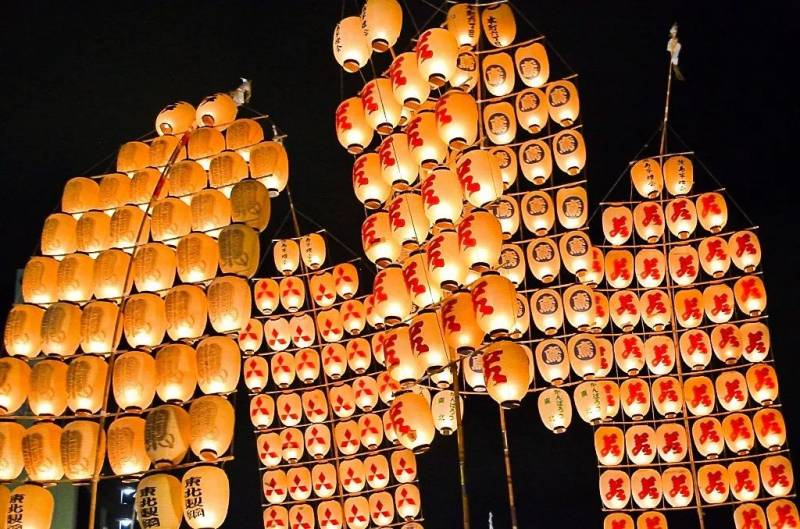 其实这项表演也算是一种十分宝贵的民间绝学了,竿灯高度12米、重50公斤,上面悬挂几十盏灯笼;这又高又重的竿灯竟是由表演者一人用额头或腰部顶起来的哦!
