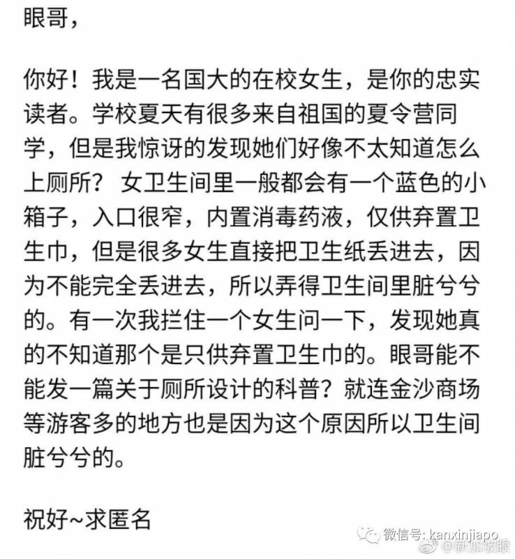最近新加坡眼收到网友的来稿,科普了一下女性厕所里蓝色小箱子的正确用法。