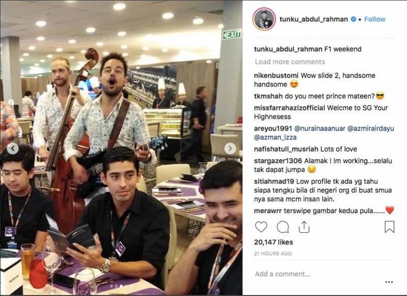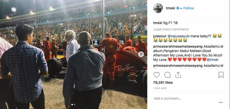 柔佛公主东姑阿米娜也现身F1,并出现在了《疯狂富豪》演员谢宛谕的instagram动态,她身着便装,气质优雅出众。