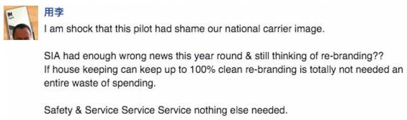 也有网友认为,这名飞机师损害了新航的名誉。他也指出,新航应该在进行品牌重塑之前,管理好自家的事情,要不然在品牌重塑上花的钱都将泡汤。