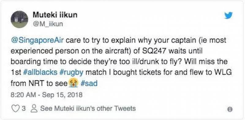 遭饮酒事件影响的乘客也发帖质问新航为什么飞机师(最有经验的机组人员)在起飞之前才发现自己喝醉无法飞行,结果害得他赶不上已花钱买票的球赛。