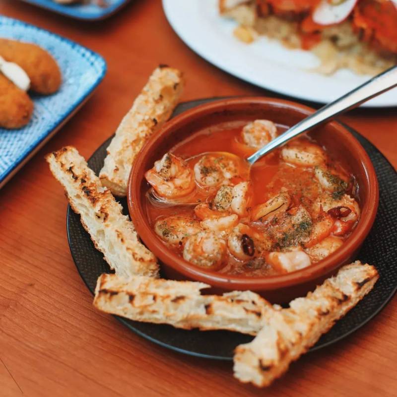 进入餐厅后,您会看到一个繁忙的开放式厨房结合吧台,厨师和调酒师并肩工作。餐厅的Tapas做的很地道,西班牙冷汤,小青椒等食材都非常新鲜。