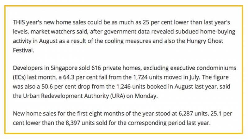 根据8频道新闻,商业时报等多家媒体报道,房地产市场观察人士表示,由于新加坡房市降温措施以及华人传统农历七月的影响,新加坡政府数据显示2018年8月新加坡房屋购买活动减少,因此今年的新屋销售可能比去年的水平低25%。