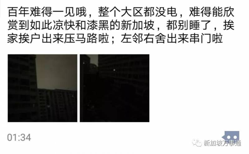 也有乐天派觉得,在新加坡经历难得的停电挺新奇有趣的啊。大家都甭睡了,串门唠家常吧!