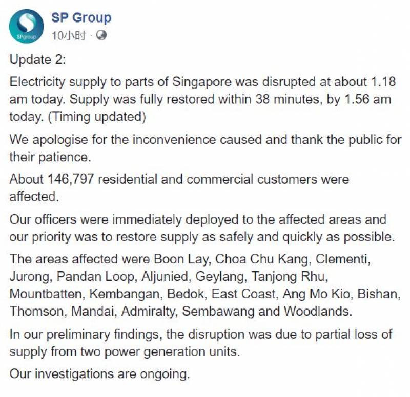 虽然电力在38分钟内恢复了,但这样大范围、影响人数众多的全岛性停电在新加坡应该还是几十年来首次发生。