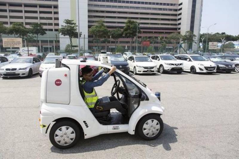 新加坡樟宜机场航空货运站的一辆无人驾驶汽车,用于运送货运单据