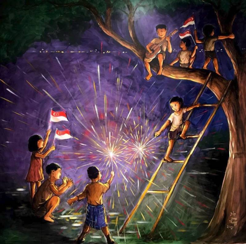 由本地艺术家Yip Yew Chong绘制的庆中秋壁画