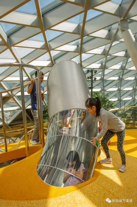 奇幻滑梯的最高处还有一个6.5米高的观景台,让您从不一样的视角窥探星耀樟宜的景色。