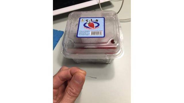 以前觉得草莓里吃出个虫、青蛙、蜘蛛……都不算新闻了,没想到,竟然还有缝衣针!!!
