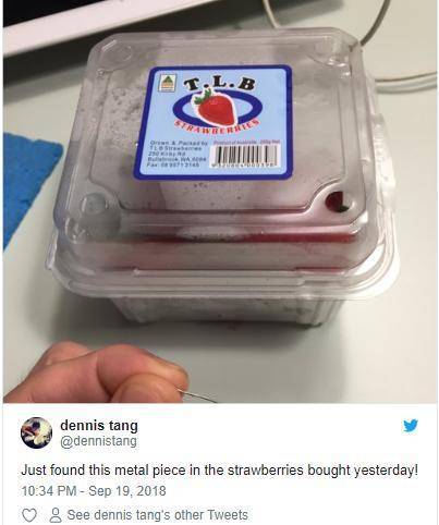 最近澳洲草莓藏针事件沸沸扬扬,不仅是草莓,香蕉苹果也都有藏针。