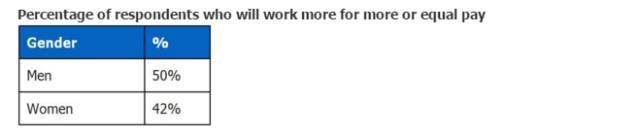 50%男员工,42%的女员工,会在同薪情况下选择加班