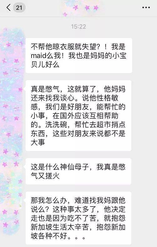 反正我工作忙也没有多想,后来她就回国了,我以为她是体验完了回去了。结果后来从我爸妈那里得知,她体验了一番觉得,不想留在新加坡。 说这里没什么好,不适合自己。