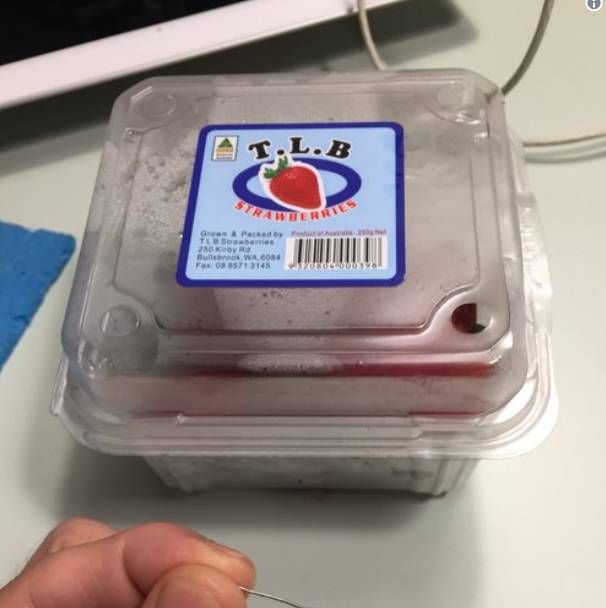 同在昆士兰州,一名9岁儿童咬入草莓时也发现了一根针,