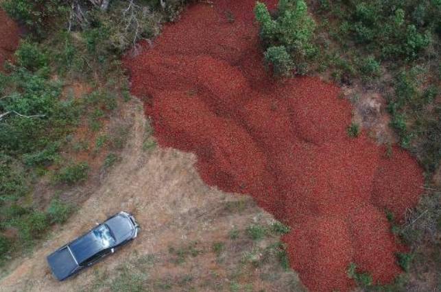 种植草莓的农民正在倾倒数千吨水果,将成熟的草莓埋入地里。