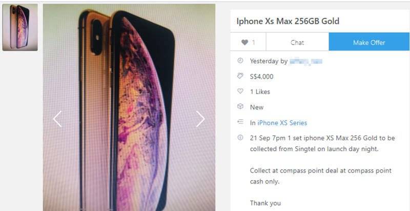 广告网购平台Carousell上出现多名卖家公开售卖iPhone XS以及iPhone XS Max,而卖家甚至称买家可在昨天和今天之前到手机店取货。