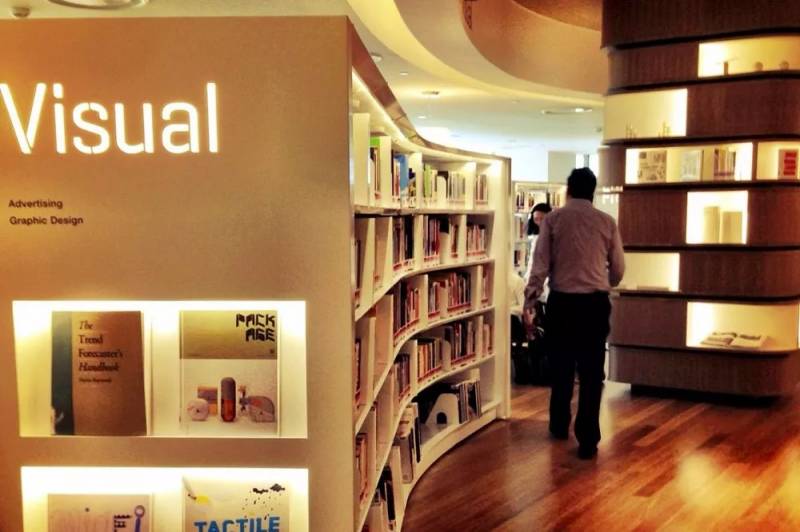 来到新加坡最热闹的乌节路购物中心,精致的图书馆颠覆传统形象:流线型的书架设计、卤素造型挂灯、充满香味的咖啡小座、生生不息的流水墙……