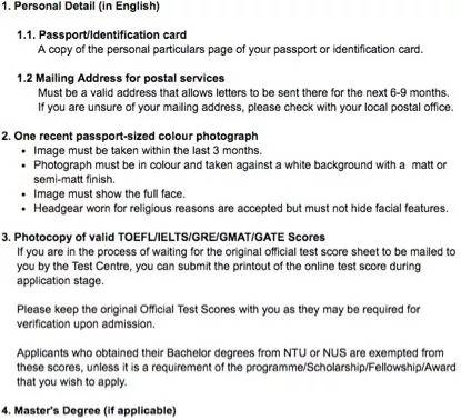 注意:对于申请南洋商学院和拉惹勒南国际研究学院(RSIS)的同学需要自己去学院官网检查有没有要求额外申请文件哦~