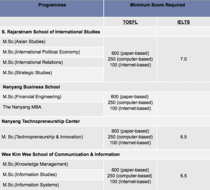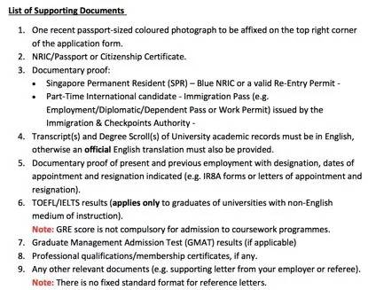 * 不是新加坡大学毕业生的申请人需提供有效的GRE / GMAT成绩(学院官网上有针对相应课程的具体要求除外)且考试日期必须在申请之日起2年内(雅思可替代托福成绩)