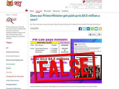 有关新加坡总理年薪超过400万新元的假新闻在网上流传,政府打假网站澄清,总理的年薪是220万新元。(档案照)