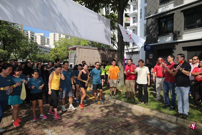 配合三巴旺雅路桐海港公园重新开幕,许多居民报名参加“垂直竞赛”。(严宣融摄)