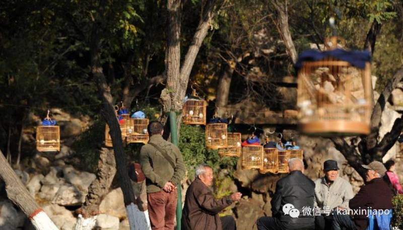 大爷们白天去遛鸟,强身健体,晚上和老友们聚著聊聊天。