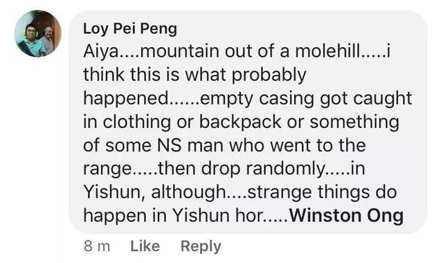 不少网友认为这并不是什么大事,并指出国民服役人员可能在靴逢或包中发现空弹壳,便随手将它丢弃在义顺。