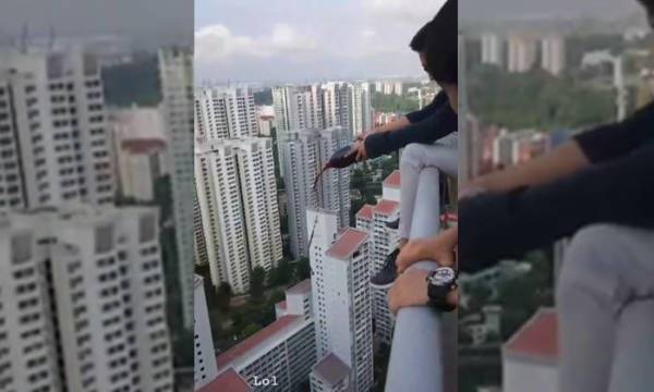 (新加坡25日讯)社交媒体上的一个视频显示,一群青少年危坐在女皇镇杜生庄47楼天台花园的栏杆,还从高空倒可乐到楼下。有居民申诉,他们甚至从高楼丢下塑料汽水瓶,差点打中居民,也有汽车被高空垃圾击中。