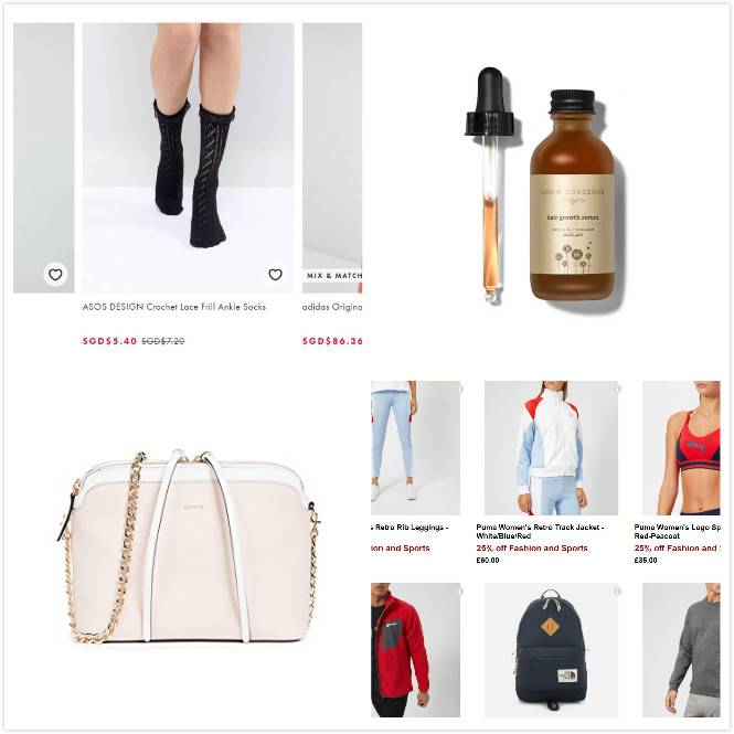 页面内运动服装、配饰、鞋包