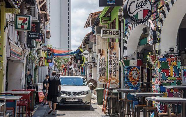丹绒巴葛,靠近牛车水,是新加坡当地一个历史保留区,有很多南洋特色的骑楼,