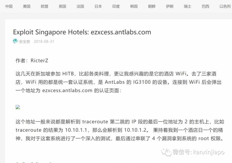 一腾讯员工在新加坡酒店入住期间,因为好奇(或是一个程序猿的自尊+职业病),检查了一下酒店WiFi漏洞,结果居然被新加坡警方抓了!
