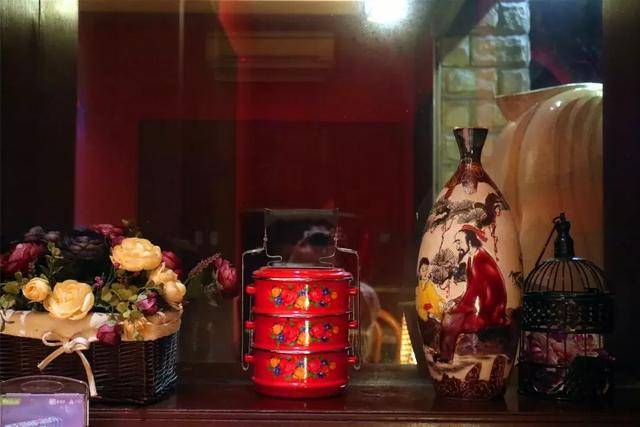 当店门被推开的瞬间,弥漫着南洋靡靡之风的装潢,便映入眼帘:饱和度极高的暖黄,与如油画般明艳、且大色块的墨绿搭配,旋顶是复古、且硕大的水晶灯,走廊的尽头是通往二楼的木质楼梯。随着大门的关阖,风雨皆被挡在了身后,而我的思绪则被带入到上世纪的南洋,如影如幻。