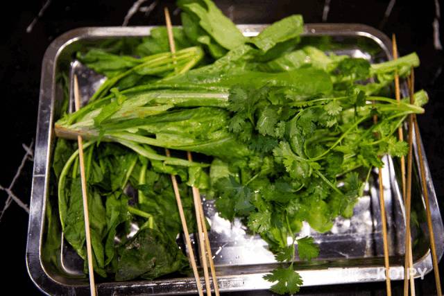 牛肉片切得很薄,裹着清香宜人的薄荷叶