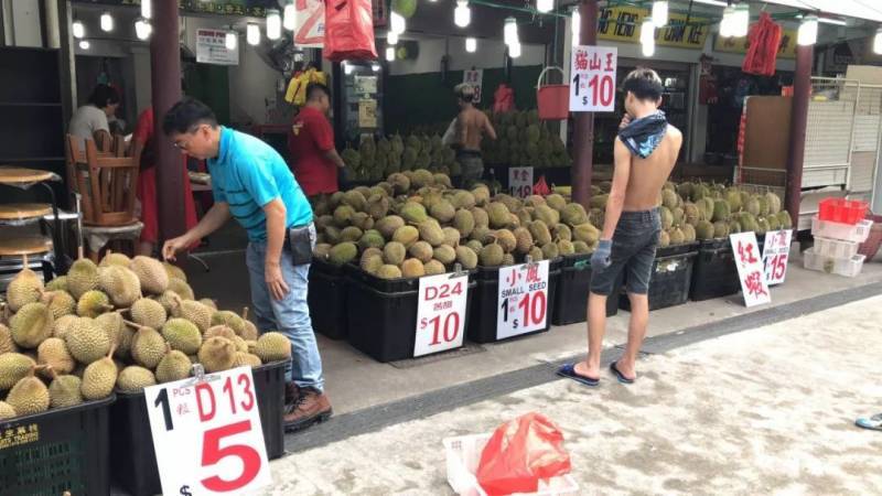 这满街飘香的榴梿味 那是时刻提醒着我们 现在,正是吃榴梿的季节~最近,新加坡市面上 更是惊现了 10新币猫山王 噢买糕,就是那个号称是 马来西亚名种 “榴梿之王”的猫山王吗?原来,榴梿旺季到了 结果“吃货”还没到 现在正是斋月 穆斯林小伙伴正在“封斋” 导致了这个买榴梿的人 并没有平时那么多