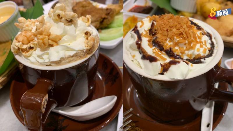 新咖啡口味爆米花白咖啡(左)和椰子白咖啡(右)。