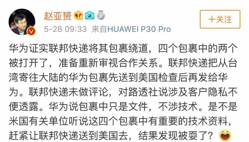 “最近通过联邦快递派送的重要商业文件未被递送到目的地,而是被转运,或被要求转运到在美国的联邦快递,这种经历破坏了我们的信心。”