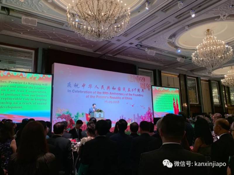 今天,中国驻新加坡大使馆在香格里拉大酒店举办了庆祝中国国庆的晚宴: