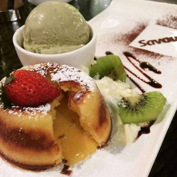 喜爱榴梿的小伙伴,记得要点一份Mao Shan Wang Lava Cake呀!用勺子挖开外壳,里面流动的,滚烫的榴梿熔岩就华丽丽的出现啦!