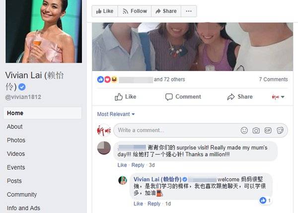 赖怡伶前天在面子书留言,表示抗癌勇士很坚强,要跟着学习。(取自面子书)