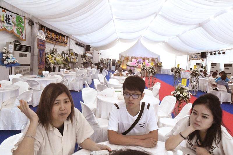 海边丧礼设置了冷气帐篷,可容纳300人。